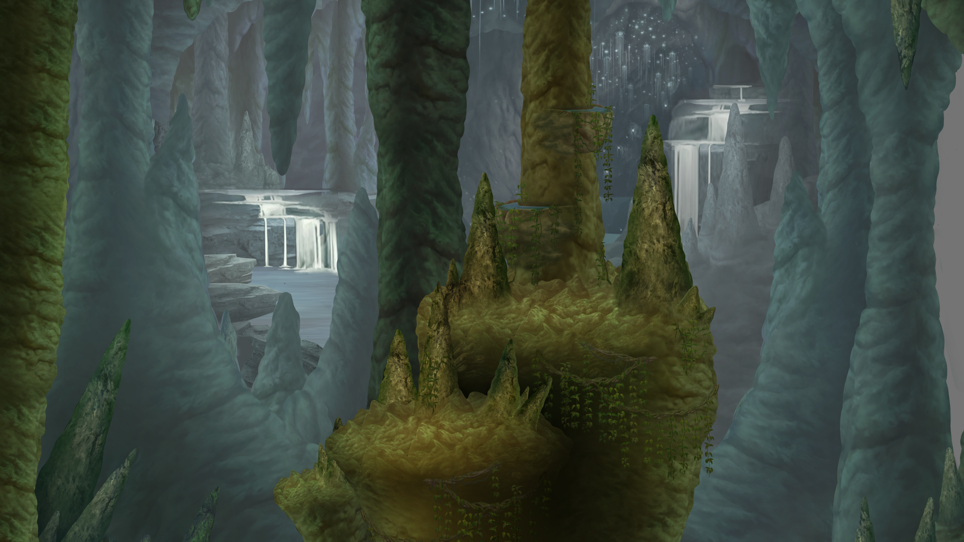 While the artwork for the Alpha level / Demo is 99% complete, here is a quick look into half completed sprite for the far background of the cave level. Enjoy!